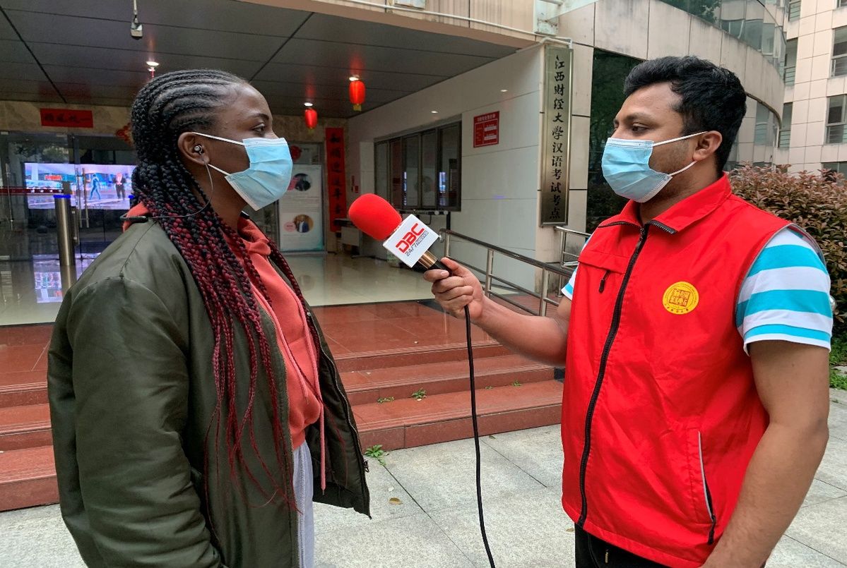 江西财经大学的一名留学生正在与吴迪分享她防疫的故事